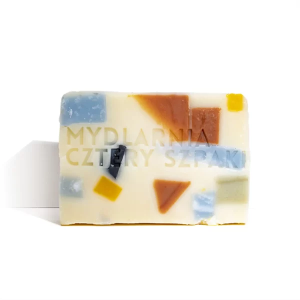 Mydło Mozaika to unikalna, kolorowa kostka, w której zatopione są skrawki innych mydeł, tworząc niepowtarzalny wzór. Dzięki bogactwu składników odżywia, oczyszcza i regeneruje skórę. Aromatyczne olejki eteryczne zapewniają relaksujący i odświeżający zapach.